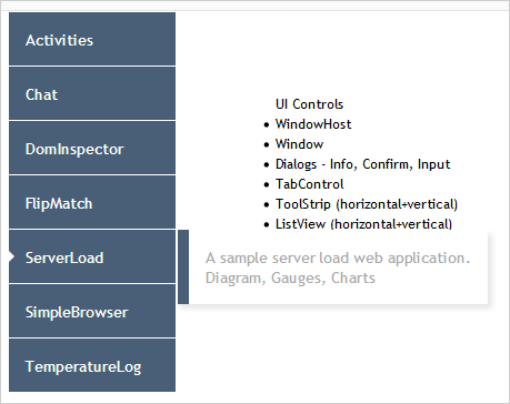 The MenuItem class represents an expandable list item. The collection of child items is accessible through the MenuItem.items property. A menu item displays the text, specified by its title property, and, optionally, an icon, specified by its imageSrc property, or its content can be set to a custom HTML string via its template property. The menu item title can also serve as a link to an URL, specified by the href property.