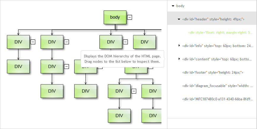 The Treeview control displays a hierarchy of nodes. Here is an image of a tree view that renders the DOM hierarchy of an HTML page: