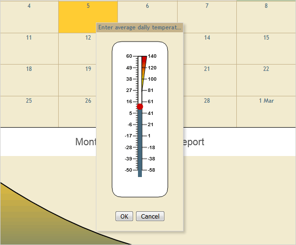 // create the input window var window1 = new ui.Window(); window1.theme = "earth"; window1.title = "Enter average daily temperature"; window1.allowResize = window1.allowMaximize = window1.allowMinimize = window1.allowPin = window1.allowClose = false; window1.templateUrl = "Thermometer.html"; window1.contentLoad.addEventListener(loadThermometer); document.getElementById("content").appendChild(window1.draw()); window1.element.style.zIndex = 5; window1.attach(); window1.close(); |